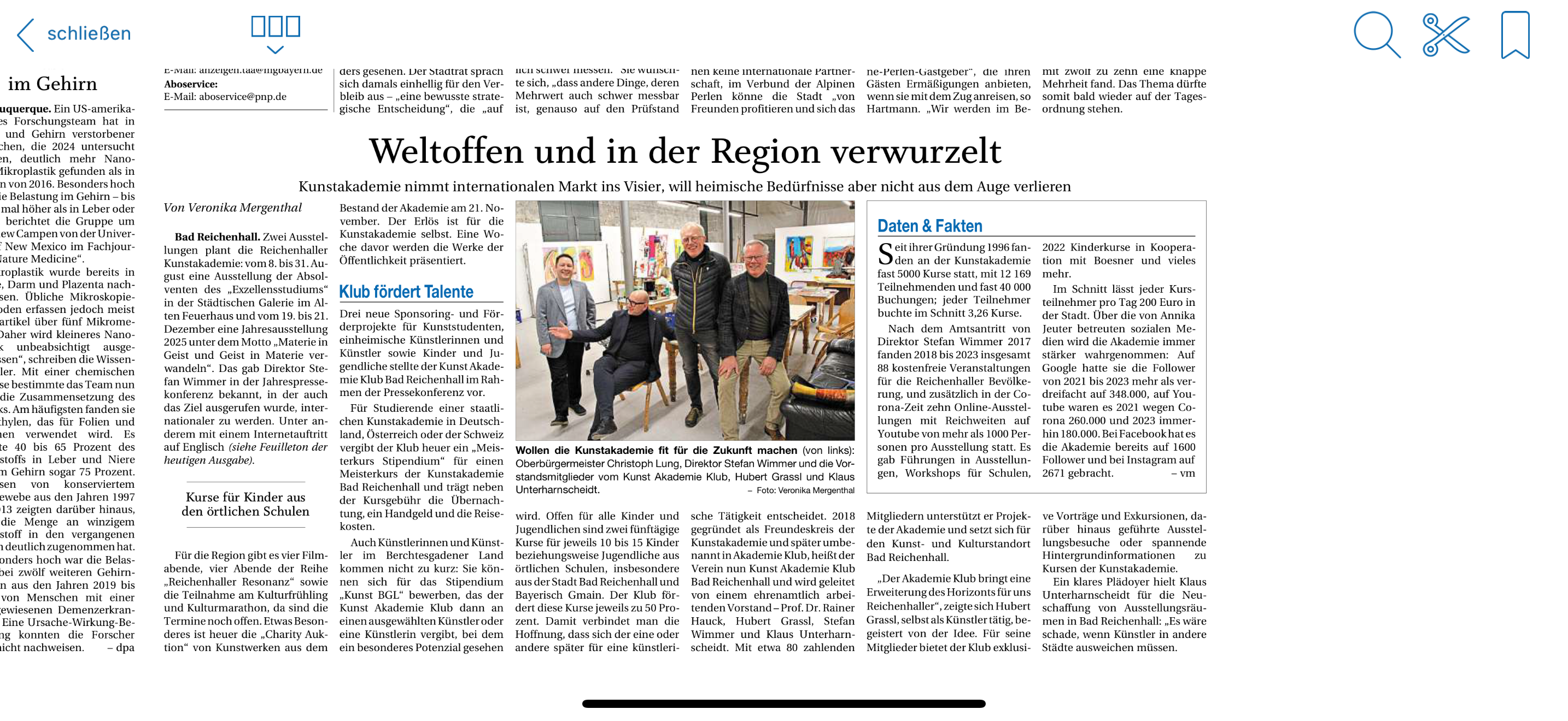 Eröffnung der seit 2020 bestehende Ausstellung „Kunstkur“ im Kurmittelhaus der Moderne mit OB Dr. Lung und organisiert von Traudi Koller aus unserem Klub. Es gelang ihr 25 Künstler/innen der Region zu gewinnen, um deren Werke zu zeigen. Viele davon sind entweder Mitglieder in unserem KunstakademieKlub oder nehmen an Kursen der Akademie teil.