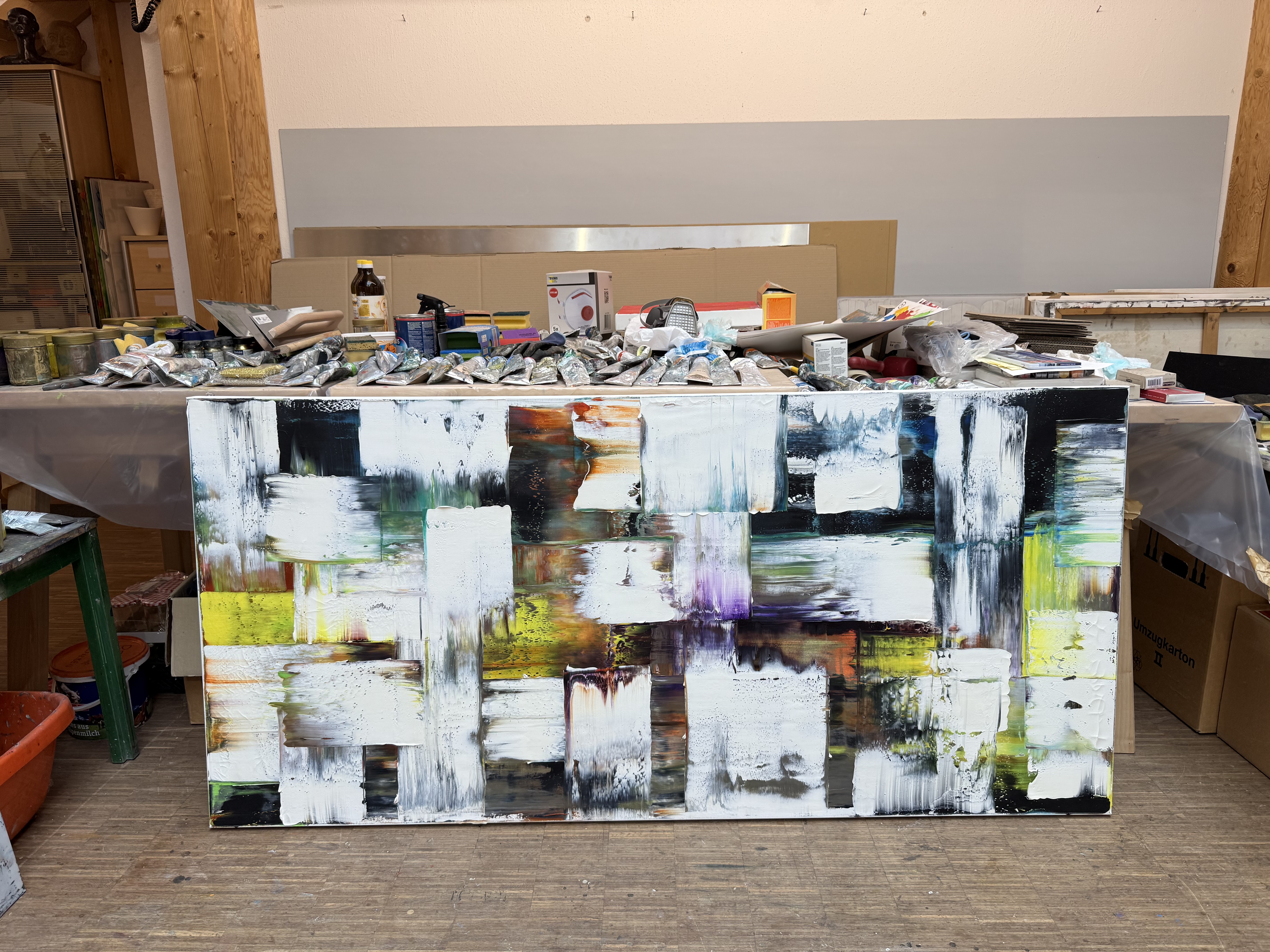 Atelierbesuch des Oberteisendorfer Künstlers Jakob Lang. In seinem großen, im Loft Stil gebauten Atelier, kommen Werkstatt und Galerie zusammen. Gerade 40 Jahre alt, ist Lang schon die Hälfte seines Lebens als freischaffender Künstler selbständig tätig – entsprechend vielfältig ist seine malerische Biografie, durch die er uns hindurchführte.